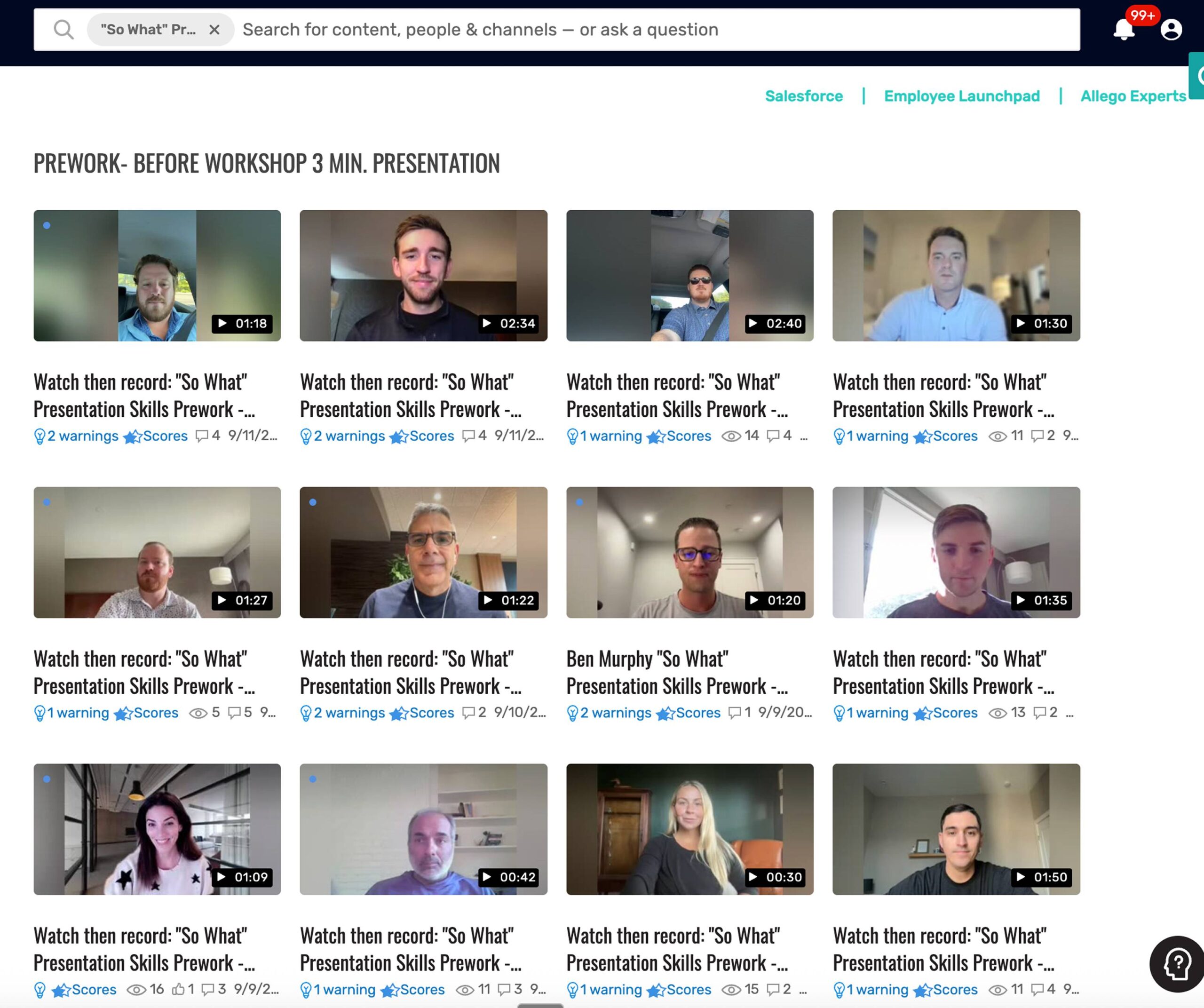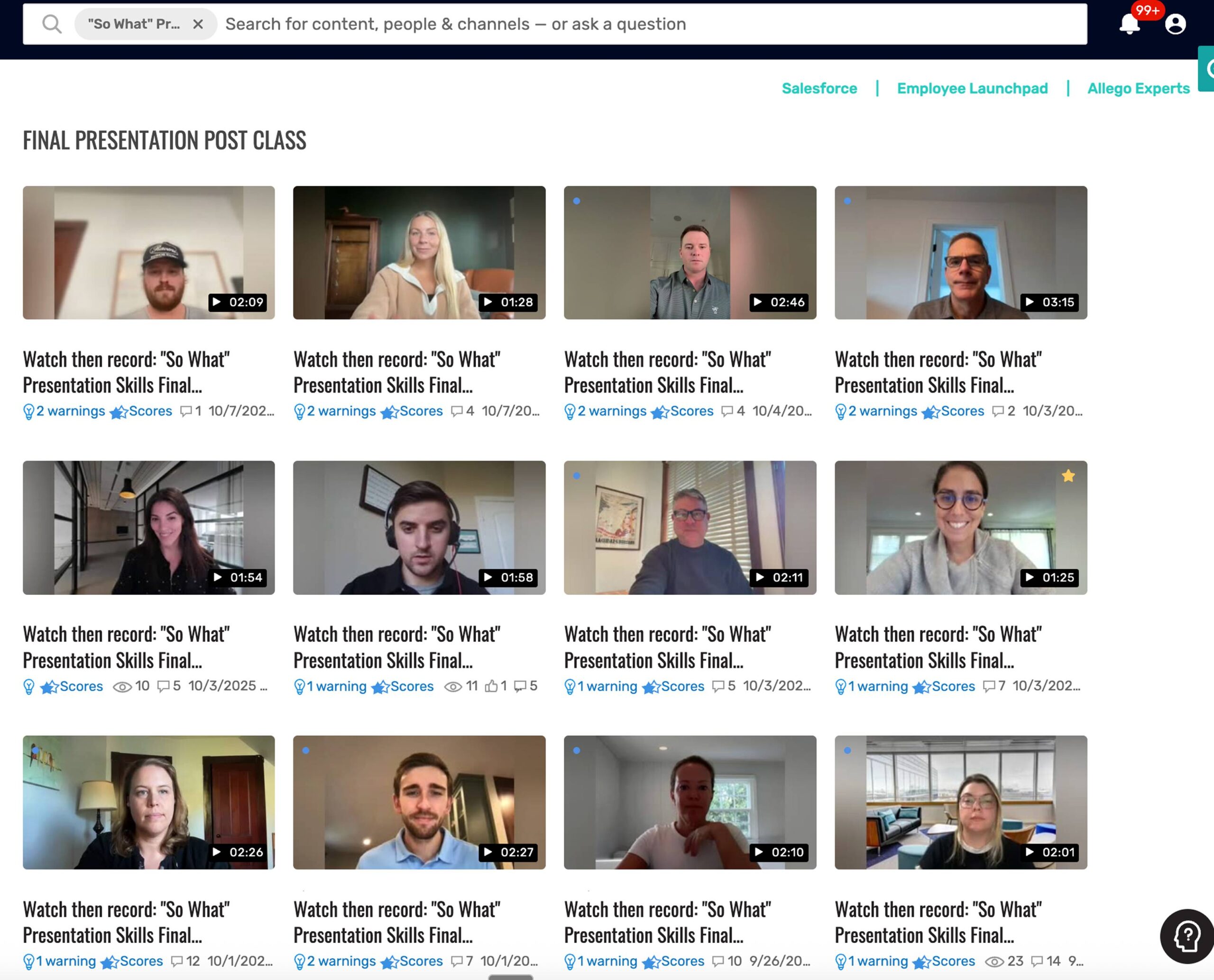 - Rapid skill adoption through prework, interactive role play, instructor-led peer discussions, and Allego-based, post-class-video coaching
